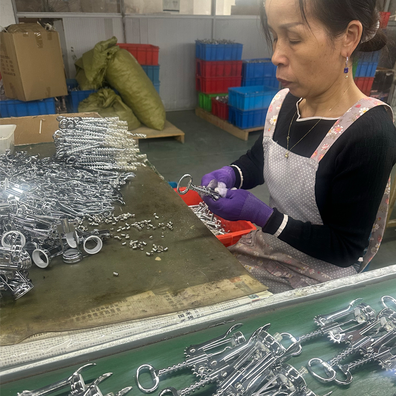 عادةً ما تستخدم الطلاءات الموجودة على جميع مكونات المفتاح طرق الطلاء الكهربائي أو الطلاء، وفي هذا الرسم التوضيحي، سنركز على الطلاء الكهربائي. تتم معالجة الطلاء الكهربائي بواسطة مورد خارجي، الأمر الذي يتطلب مرافق ومعدات ومهندسين صناعيين متخصصين للغاية يتمتعون بسنوات من الخبرة في مجالهم، إلى جانب العديد من الفنيين الأساسيين والعمال ذوي الخبرة. إنها عملية معقدة للغاية. نحن نحافظ على تعاون طويل الأمد مع الموردين الذين لديهم 30 عامًا من الخبرة في الصناعة، مما يضمن استقرار المنتج. ويضمن هذا أيضًا إمكانية معالجة مشكلات الإنتاج المختلفة التي تمت مواجهتها أثناء التصنيع بسرعة واحترافية وكفاءة. وتساعد هذه الترتيبات على ضمان دورات الإنتاج لعناصر مثل إكسسوارات النبيذ وأدوات المطبخ والمسامير، مع دعم خطط مبيعات العملاء أيضًا.